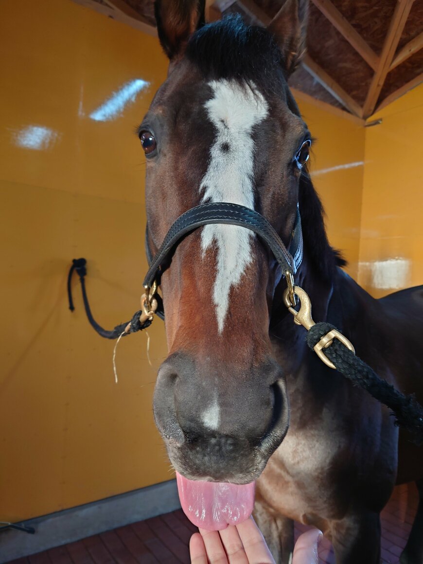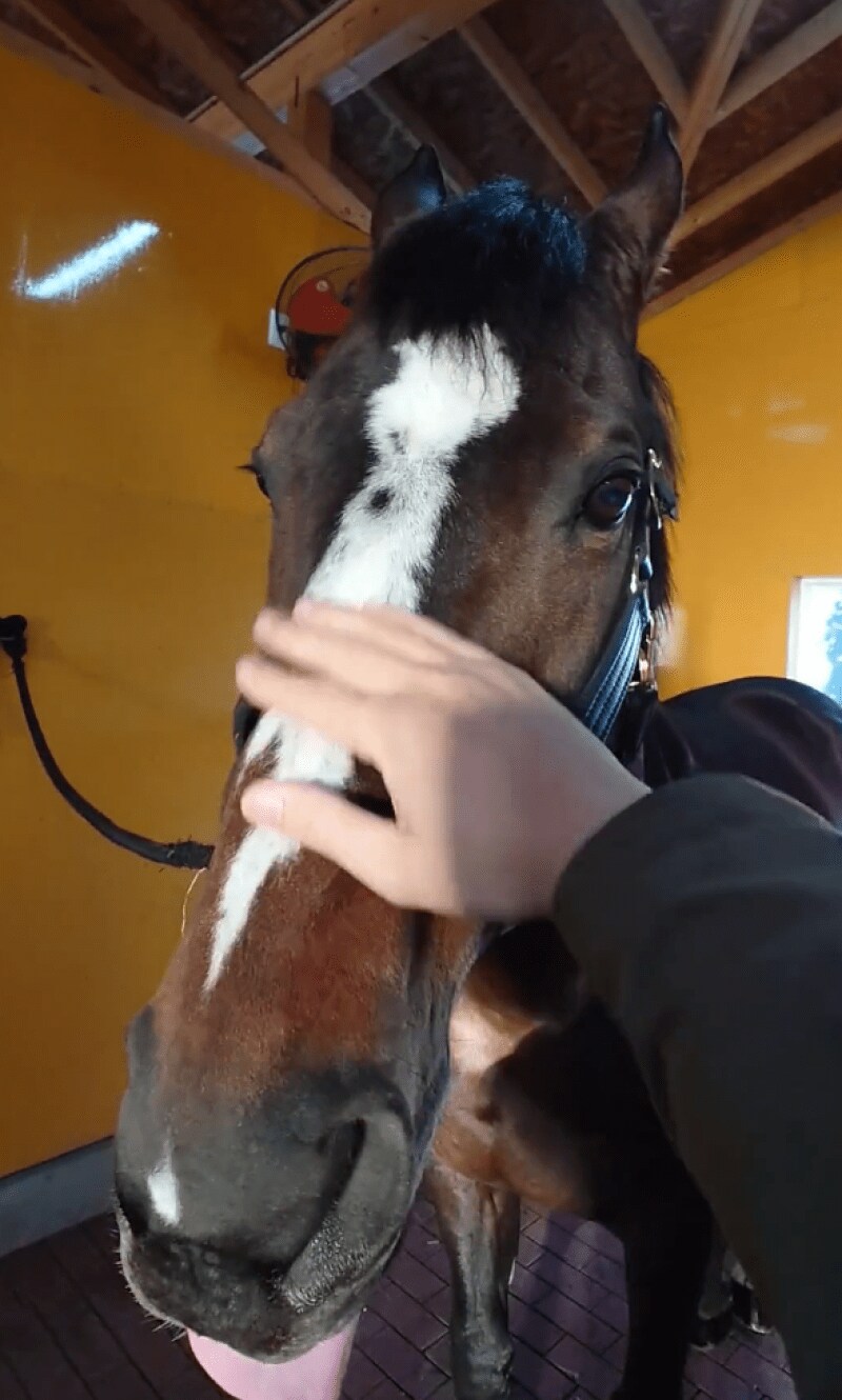 「抱いていたイメージとかけ離れていくオジュウ。こんな子だったん?」というコメントとともに投稿されたのは、馬房で撮影された動画と写真。
