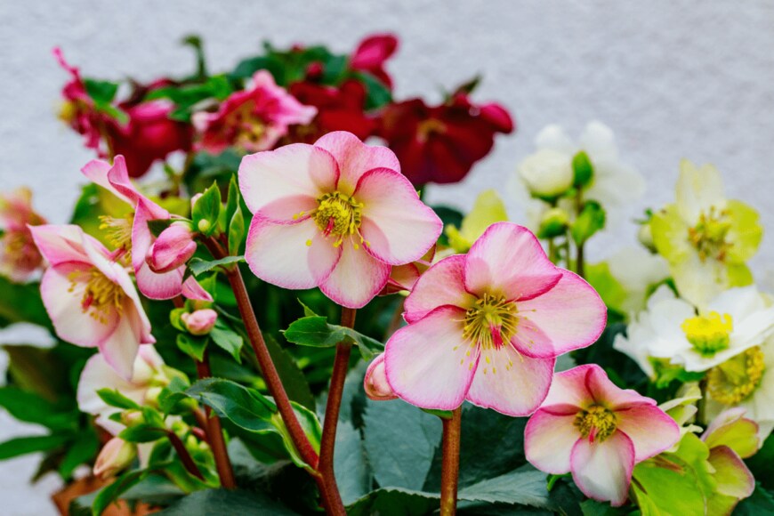 ピンク・赤・白・黄・紫・オレンジなど、ロマンチックで春らしい花色。摘み取って切り花にしてもよいでしょう。