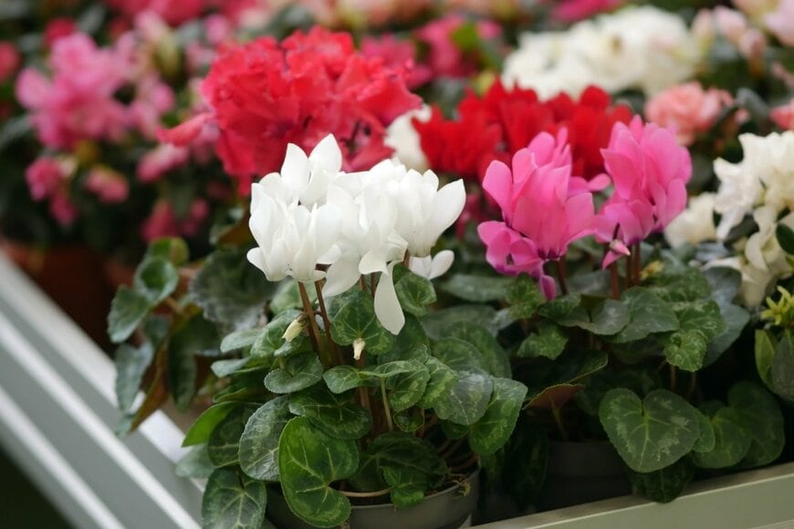ガーデンシクラメンは鉢花で知られるシクラメンを、冬の屋外でも地植えできるように改良した品種。ミニサイズの花が愛らしく、葉にも美しい斑が入るのが魅力です。