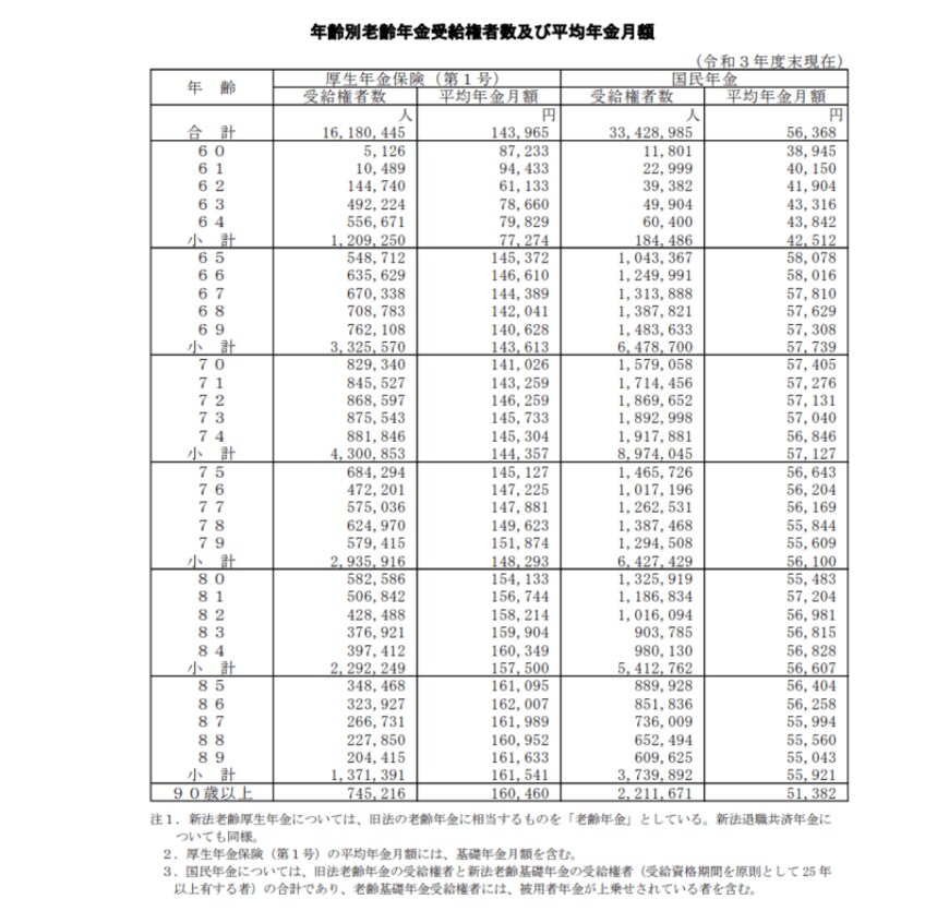 2022年12月に厚生労働省から公表された「令和3年度 厚生年金保険・国民年金事業の概況」を参考に、70歳代の国民年金と厚生年金の受給額を1歳刻みで確認します。
