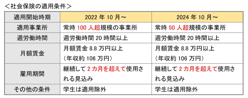 年収が106万円を超えると、勤め先の規模や月収、勤務時間などの条件によっては、社会保険に加入する必要があります。この条件に当てはまらない場合は、130万円を超えると配偶者の扶養から外れるため、自分で社会保険に加入する義務が発生します。