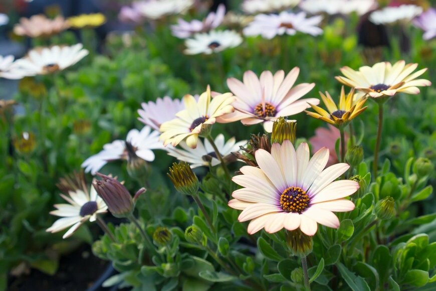 晩冬から初夏にかけて開花する多年草・オステオスペルマム。マーガレットに似た愛らしい花を咲かせます。
