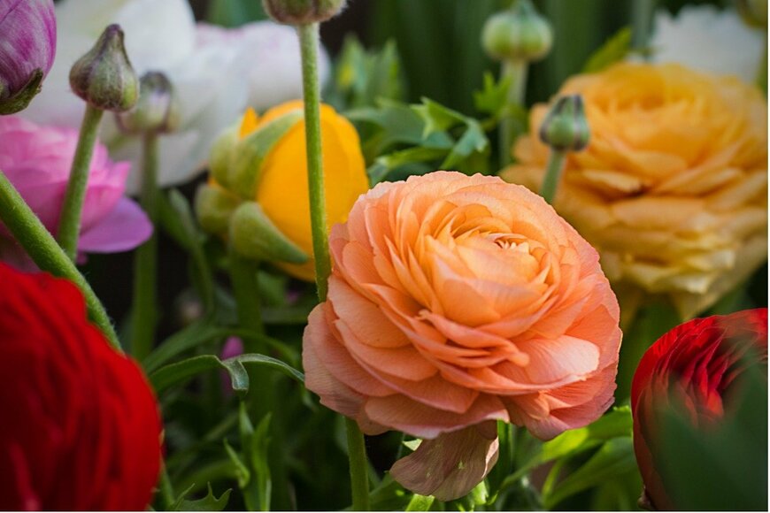 バラのように幾重にも重なる花弁が美しいラナンキュラス。