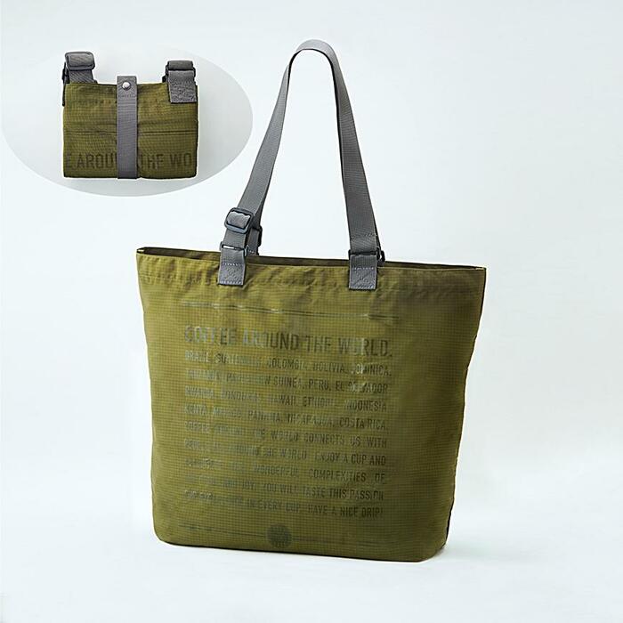 こちらは、とにかく大容量なところが特徴的なエコバッグです。大きめの商品や雑誌などを購入しても、このエコバッグがあれば問題ありません。折りたためばコンパクトサイズになるので、旅行先のサブバッグとしても大活躍してくれますよ。おしゃれなカーキカラーと、英字がプリントされたデザインにも胸がときめきます。