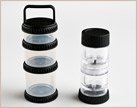スパイスや食材の持ち運びに便利な容器です。同サイズであれば何個でも連結することが可能です。