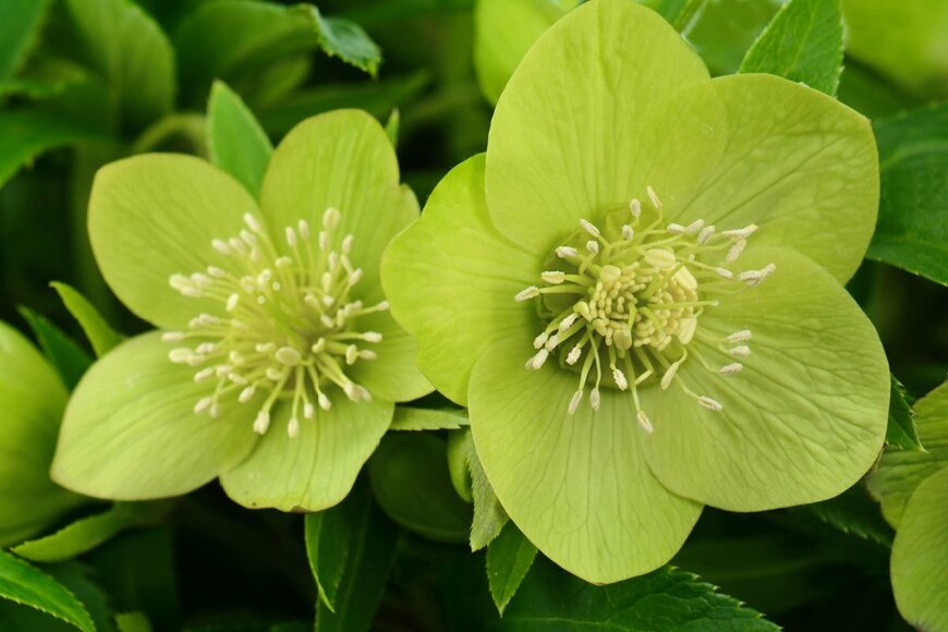 緑の花を咲かせる植物は比較的少なく、珍しいだけに希少価値を感じる人も。コレクターにとっては魅力的な花色と言えるでしょう。目立つ存在ではありませんが、ナチュラルな花姿でまわりのクリスマスローズを引き立てます。