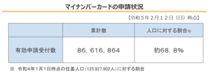 2023年2月12日時点のマイナンバーカードの申請状況は以下のとおりです。