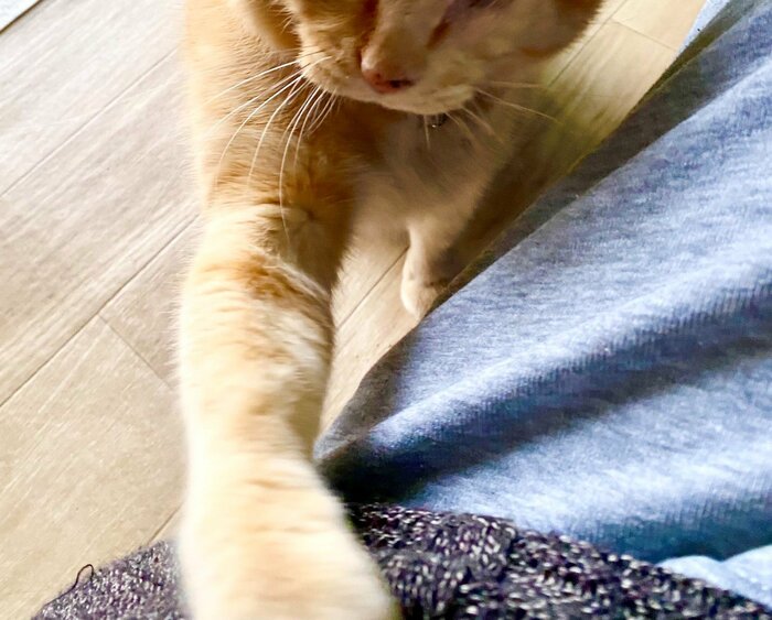 写真に写るモカくんは、優しい茶色とつややかな毛並みが愛らしいおててを伸ばし、ママさんの服に勢いよくタッチ!手先の残像からは「チョイチョイ」といった素早い動きが伝わってきます。