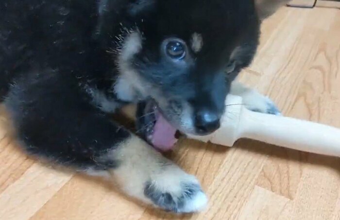 そんなコメントとともに2本の動画が投稿されました。写っているのは、黒柴の「天すけ」くん。1本目の動画には、子犬時代の天すけくんの様子がおさめられていました。