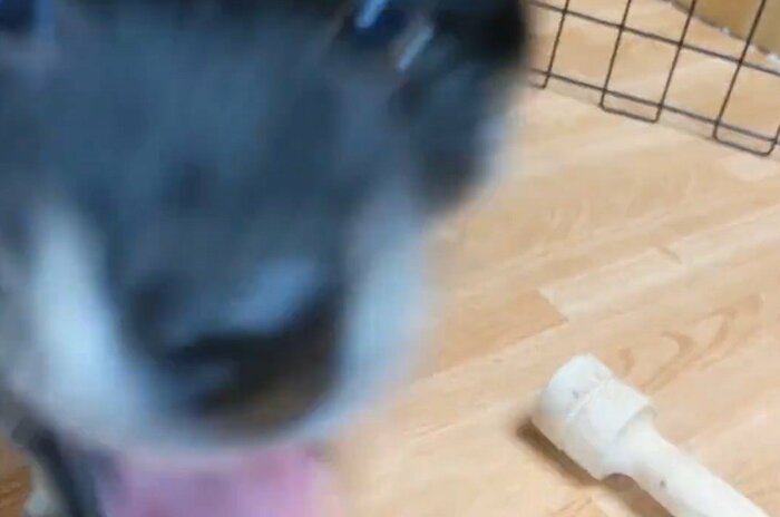 動画の終盤では、カメラの方に向かってガブリ。「カメラだって噛んじゃうぞ~!」といった具合で、元気いっぱいに遊ぶ姿がとっても可愛いです!