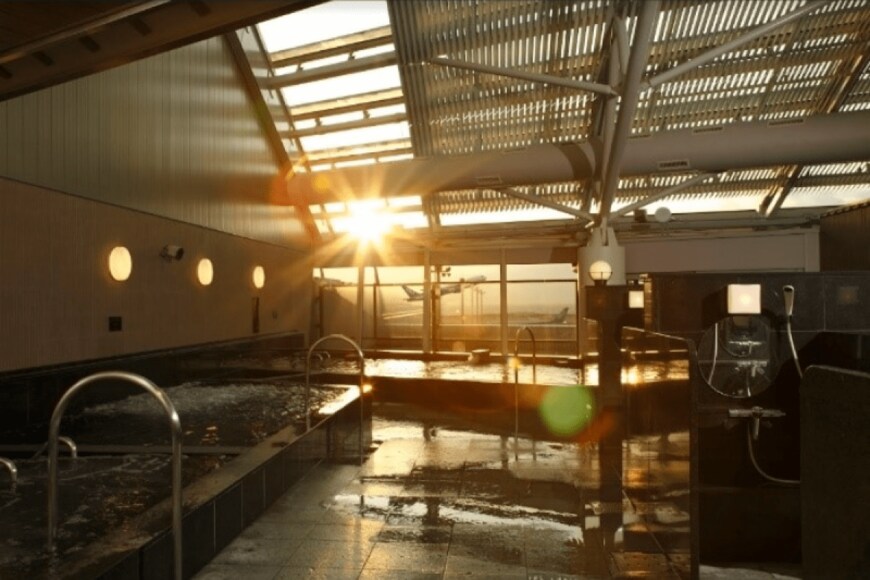 「SOLA SPA 風の湯」は大浴場をはじめ、ジャグジーや水風呂、寝湯を完備しています。大浴場の開放的な窓の向こうには、広大な滑走路から飛び立つ飛行機や伊勢湾を眺められます。