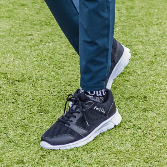 側面部には「Find-Out」というおしゃれなロゴがついています。普段着コーデとも合わせやすそうな靴です。
