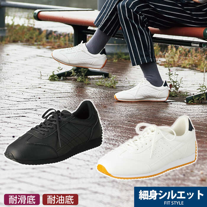 レベルの違う耐滑性能が特徴的なこちらのシューズ。耐滑底かつ耐油底なので、滑りにくさは桁違いです。撥水糸を使用しているので、水に強いところもポイント。日常生活になじむ都会的なデザインも、ファンが多い理由です。