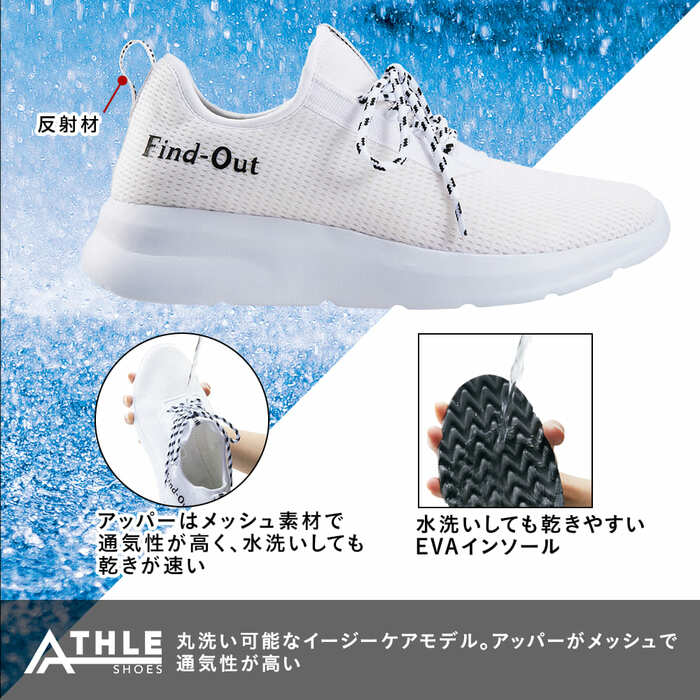 1000円以下という圧倒的な価格が魅力的なシューズです。通気性の高さと、丸洗いできるところがポイント。反射材がついているところや、洗った際に乾きが早いところも嬉しいですね。