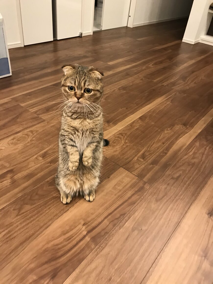 「最近ご飯の好き嫌いがはっきりしてきました」「今朝のは…」そんなコメントとともに投稿されたのは、ピシッと直立する猫ちゃんが写った1枚の写真でした。