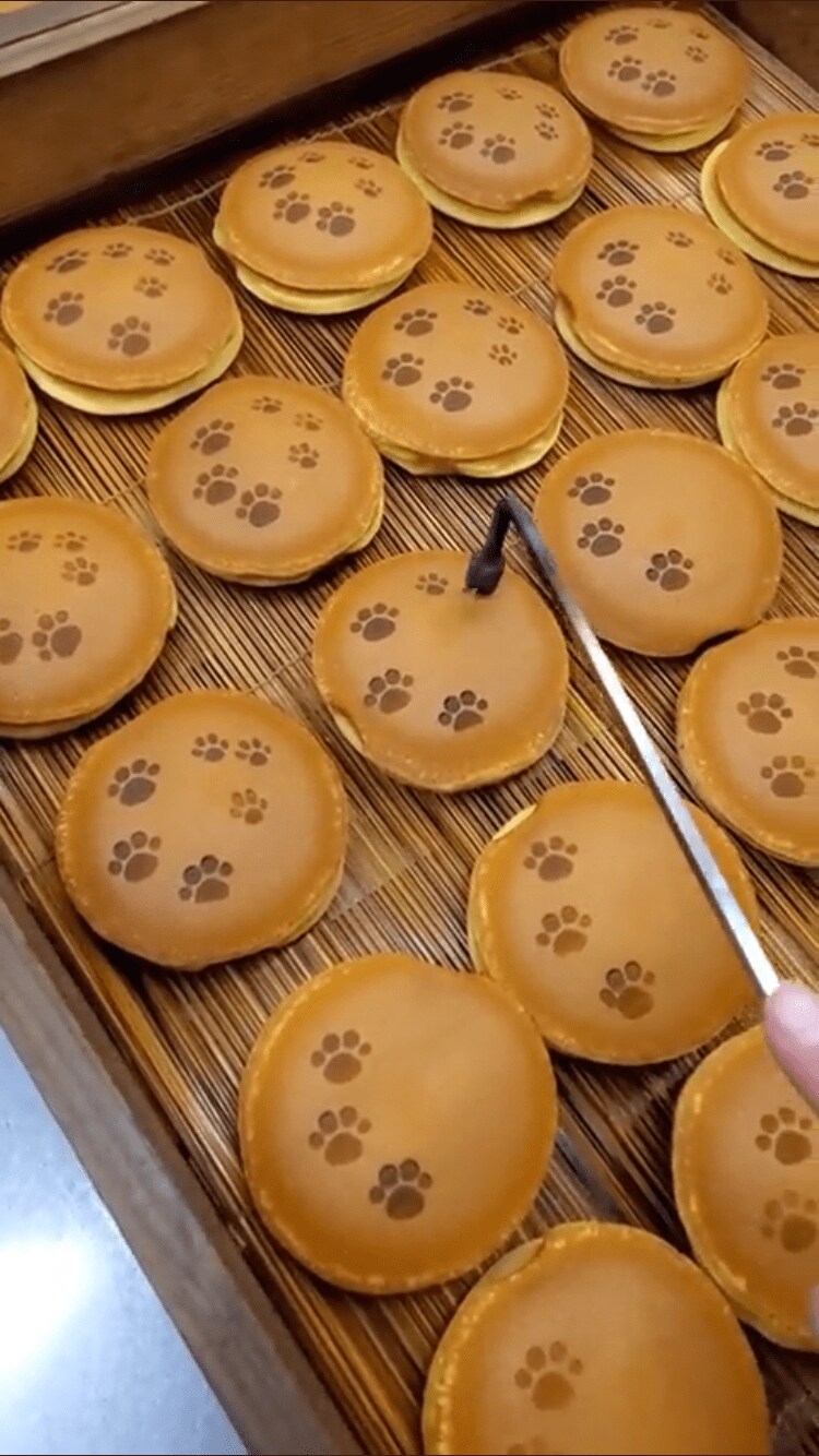 「今日は肉球の日 どら焼きに子猫の足跡をつけています」というコメントとともに投稿したのは、10秒の動画でした。