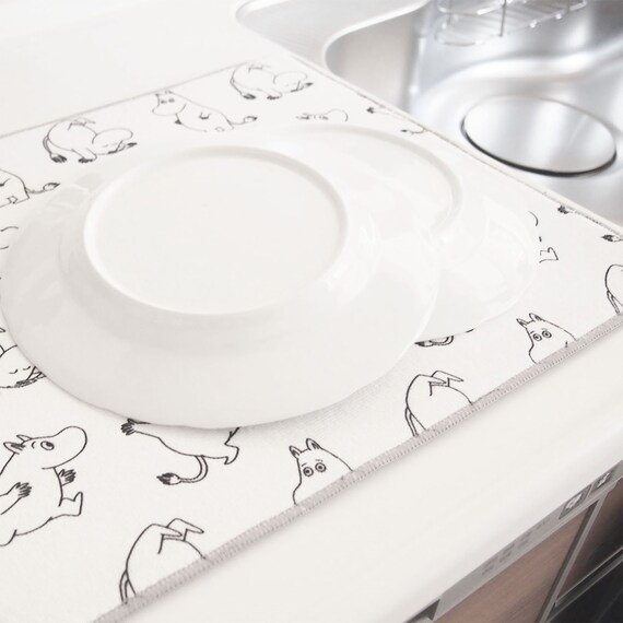 ムーミンのイラストがかわいい「吸水水切りマット」です。乾燥機が使えない食器やちょっとした洗い物の水切りに便利なアイテムです。