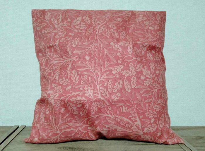 実際に「ヌードクッション40cm×40cm」をモリスデザインのクッションカバーに入れてみました。おしゃれなクッションが完成しました。