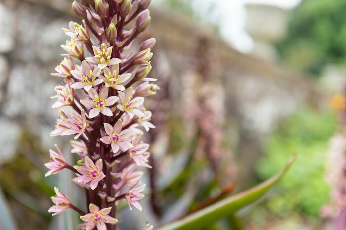 パイナップルリリーとも呼ばれるユーコミスは、パイナップルに似たかわいらしい花姿が魅力の多年草。夏になると星型の小さな花を多数咲かせ、夏の花壇を彩ります。ユーコミスは3~5月に植え付けをおこない、6~8月に開花期を迎えます。