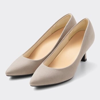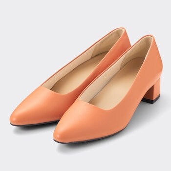 こちらはミドルヒールです。写真のベージュと、ブラックとライトオレンジの3色がそろっています。