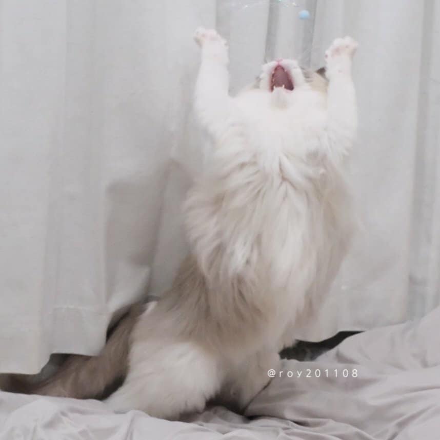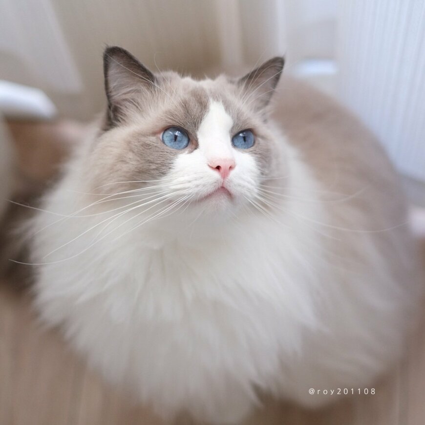 話題になったのは、ラグドールの「ロイ」くんです。サラサラとしたきれいな被毛や、宝石のような輝きを放つ瞳がとっても印象的な男の子。もふもふとした被毛の影響でシルエットが大きめに見えますが、ロイくんは一般的な猫ちゃんの体型をしています。