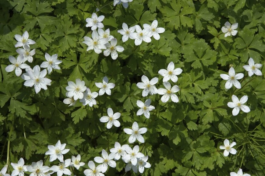 5枚の花弁からなる純白の美しい花を咲かせるイチリンソウ。やや大きめの花が茎に一輪だけ咲くのでイチリンソウと呼ばれています。