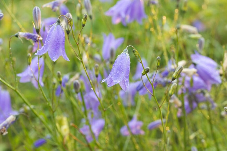 つり鐘状のナチュラルな花が和風の庭にぴったりのヤマホタルブクロ。ホワイトやピンクのシックな花色が大人っぽい雰囲気の庭にもよく合います。