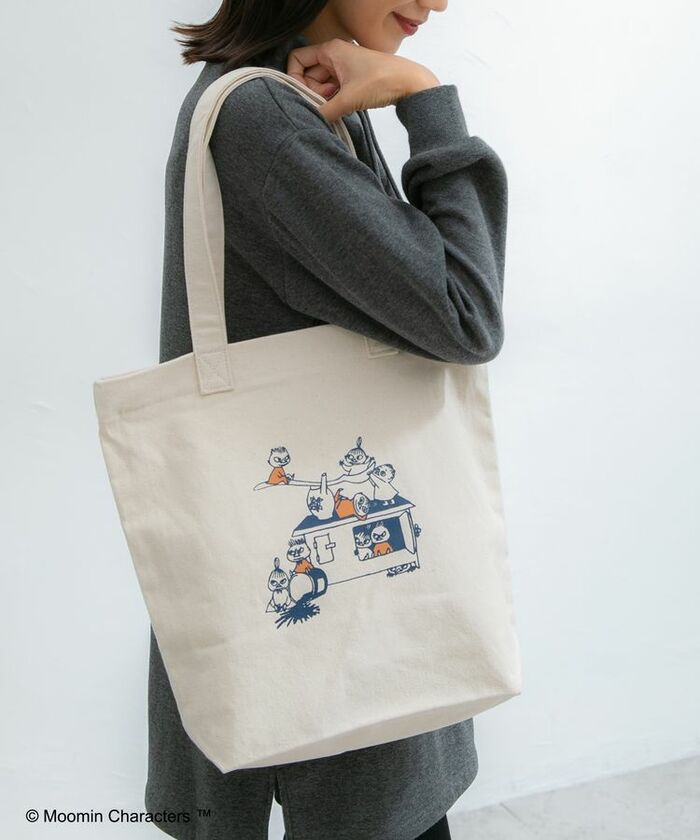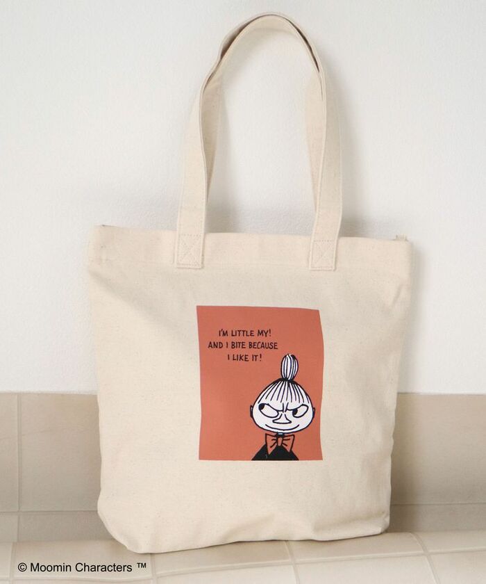 ムーミンに登場するキャラクターが表と裏の両面にプリントされたカジュアルなトートバッグです。開口部はファスナー付きで、物が転がり出る心配がありません。