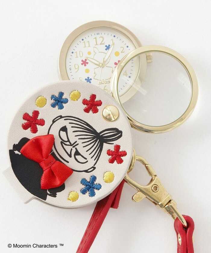 バッグにぶら下げた状態で時刻の確認ができるハングウォッチです。また、ルーペも付属していて、スライドさせると細かいものを確認するのに便利です。