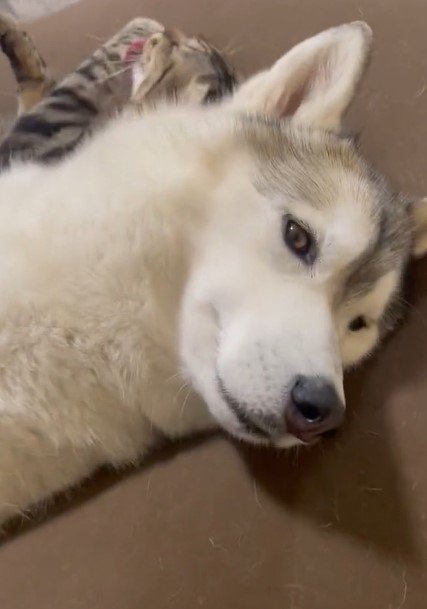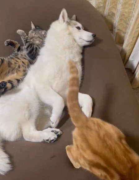ユキちゃんは猫ちゃんたちの動きに動じることなくくつろぎ続けています。