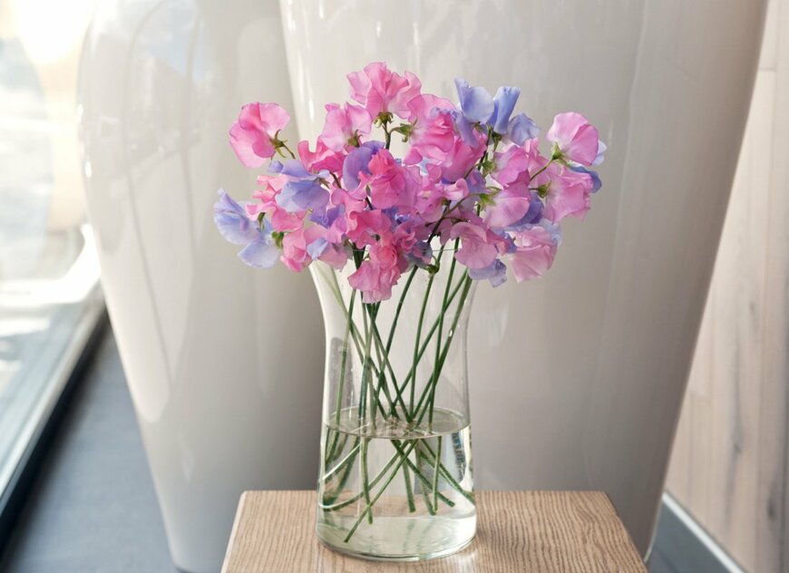 スイートピーは蝶が羽ばたいているようなオシャレな花姿と、ふんわりと香る甘い芳香が魅力の花。