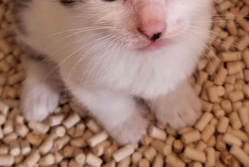 写真に写るセロイくんは、子猫らしさを感じさせるあどけない表情を浮かべています。ちっちゃな体でちょこんとお座りする姿がなんともチャーミング……!