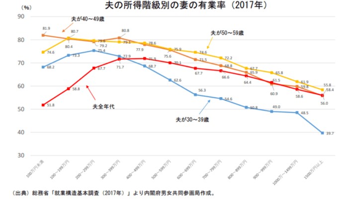 【40~50歳代】夫の年収と妻の有業率の関係は?
