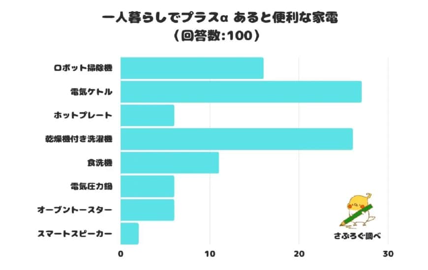 株式会社レビューの調査によると、一人暮らしでプラスαあると便利な家電として、「電気ケトル」が1位となりました。