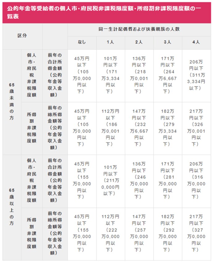 非課税になる年収は収入の種類、扶養する家族の人数によって変わります。