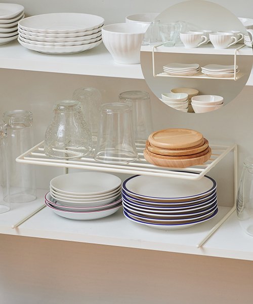 食器棚の収納力&見た目のときめき度がググッとアップするコの字型の収納です。食器棚だけでなく、調味料置きや本棚、小物ディスプレイ用など、使い方も無限大なアイテムです。