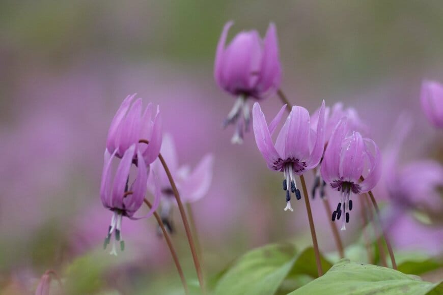 春になると群生地が観光地としてにぎわい、日本の風物詩となっているカタクリ。ピンクの花弁を巻き上げて咲く様子が可憐で、愛好家からは「春の妖精」と賞賛されています。