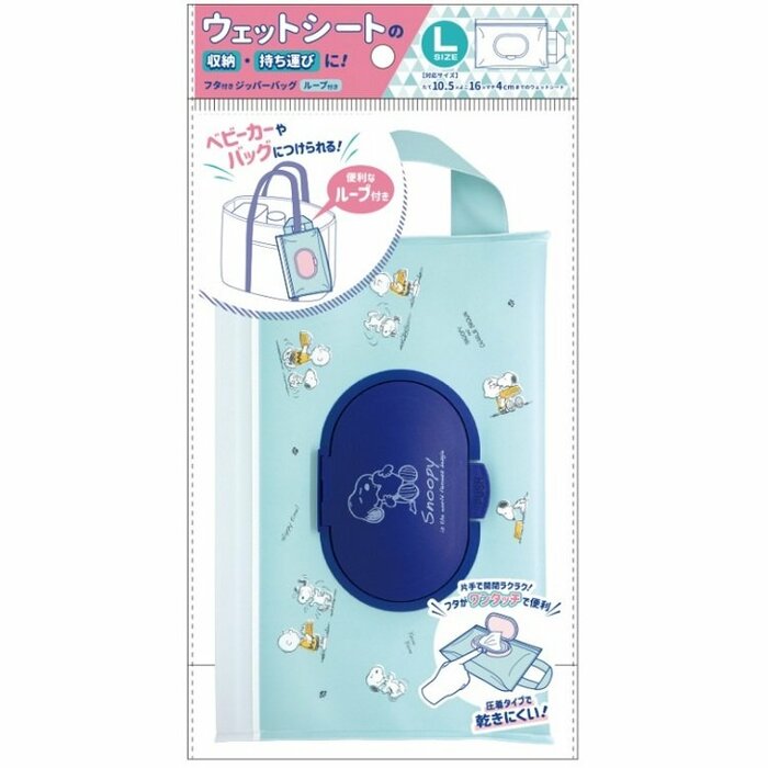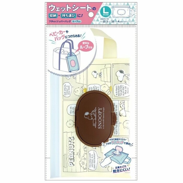 生活感が出てしまいがちなウェットシートを、スヌーピーが可愛く収納してくれるアイテムです。フタはワンタッチで開閉可能で、ループが付いているから鞄の取っ手やベビーカーにも簡単に取り付けられます。車でのお出かけの場合は、ヘッドレストに取り付けるのもおすすめです。