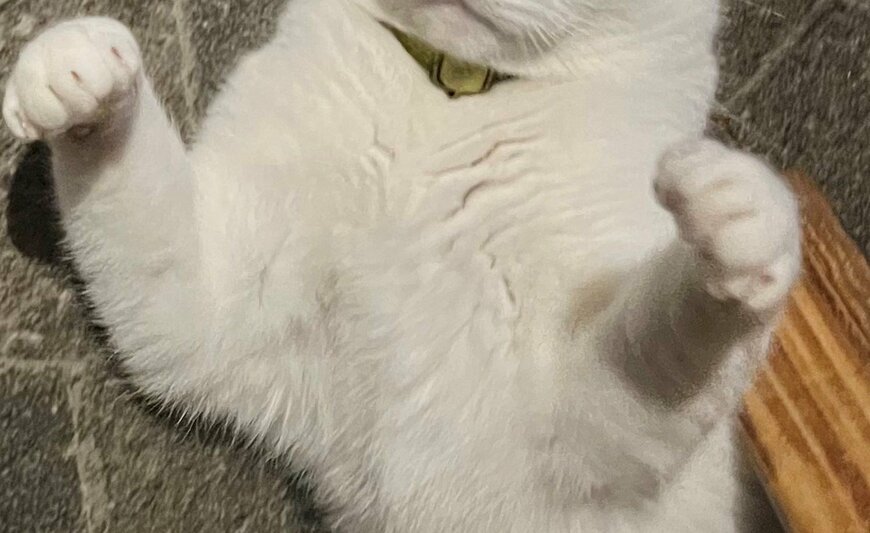 猫さんは2本足で立っているのでしょうか、両手を上げて手先をキュッと丸めています。