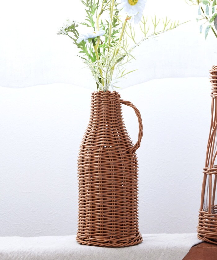 可愛らしい取っ手付きのPPラタンのフラワーベースです。フェイクフラワーやドライフラワーを飾っておけばお部屋のアクセントにも。また、お花がなくてもインテリアになる可愛いフォルムが印象的です。