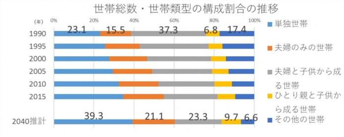 1. 2040年にはひとり世帯が約4割に