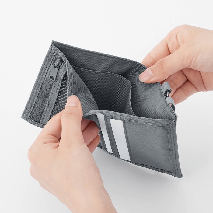 小銭やお札、カード類をコンパクトに収納できるポリエステル財布です。