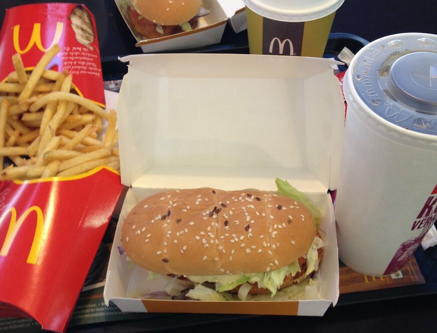 オランダのご当地メニューには「クロケット」というコロッケ入りのバーガーがあるのですが、当時はそのことを知らず「日本になさそうなものを」と考えて、その見た目から「チキンセンセーション」というメニューを注文しました。