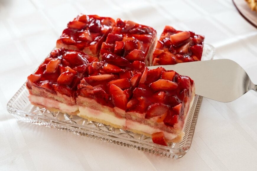 写真が残っていないためイメージを掲載しますが、生クリームを挟んだスポンジの上に、いちごのスライスを敷き詰めたケーキです。いちごの優しい酸味と生クリームの程良い甘さを感じる一品で、カフェラテとも合っていました。