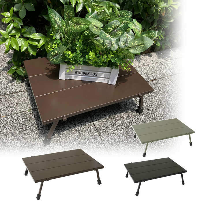 コンパクトサイズのアルミテーブルです。食品を地面に直接置きたくないシーンで活躍してくれそうです。