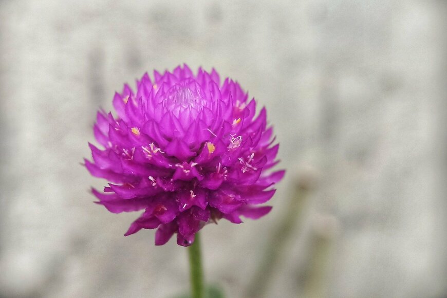 ぼんぼりのような丸い花が特徴的なセンニチコウ。可愛らしい形は花壇のアクセントにもぴったりです。花に見えるところは「苞」と呼ばれる葉が変化したもの。本当の花は苞のすき間にあります。