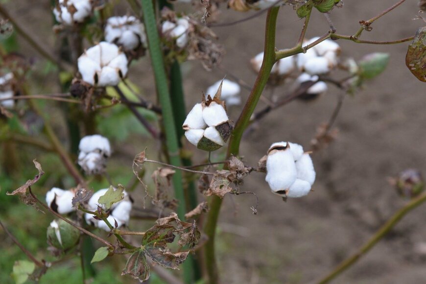 はじけた果実から綿毛が収穫できるコットンフラワー。装飾用の枝ものとしてインテリアやクリスマスの飾りにもよく使われる植物です。
