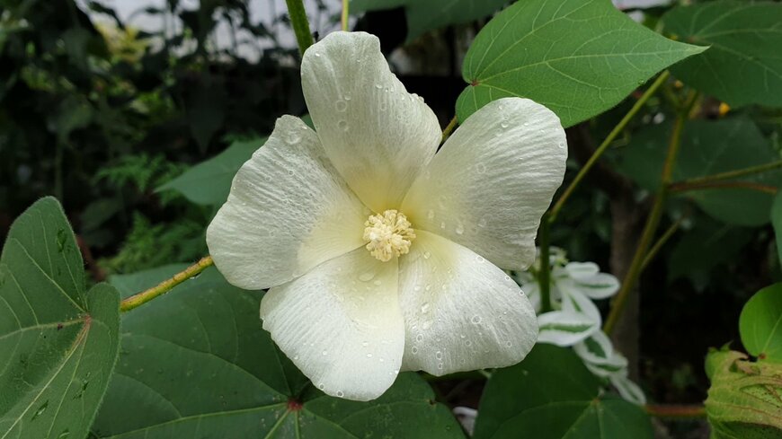 夏から秋、弾けた実から綿毛が「コットンフラワー」