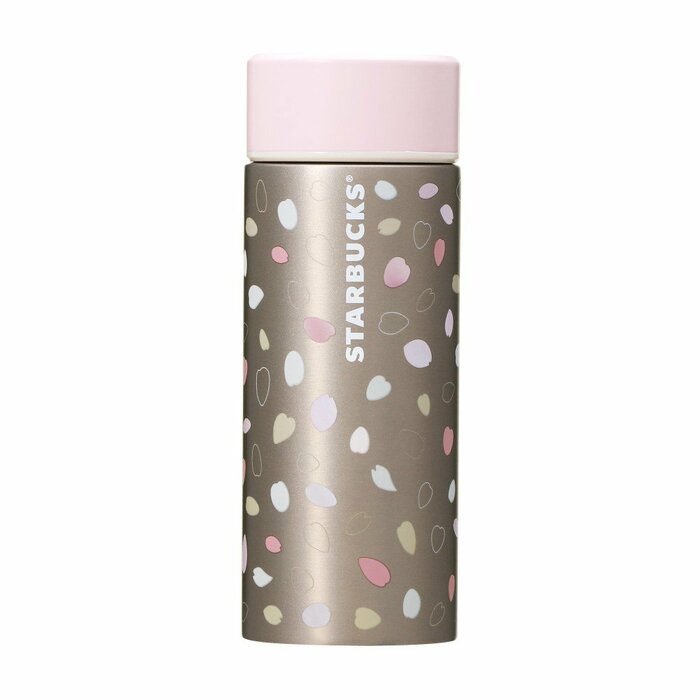 透明感のある桜の花びらを表現したステンレスボトルです。マットながら透明感のあるボディがスタイリッシュですね。ボディ全体に桜の花びらをモダンに描いています。前面には「STARBUCKS」のロゴを白でシンプルに表現。真空二重構造ステンレスで保温・保冷性に優れています。