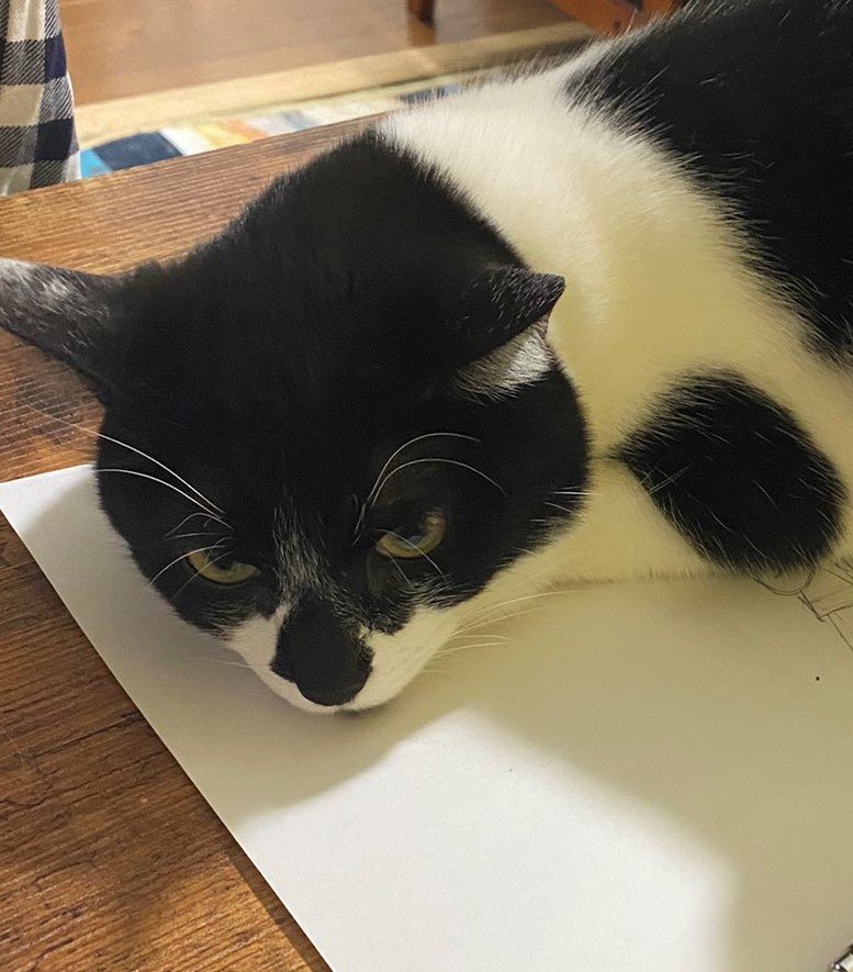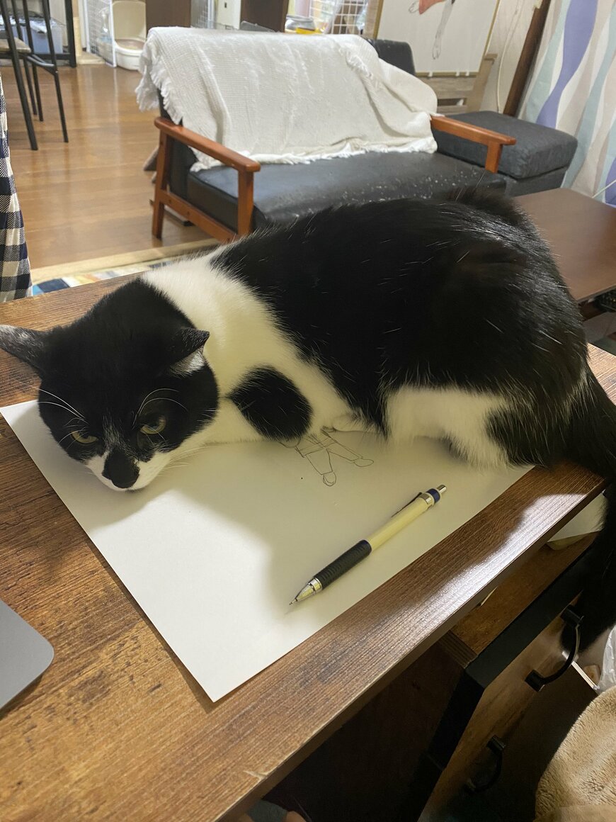 「ちょっと絵を描きたいので…」堂々と阻止する猫さんの姿がSNSで話題に